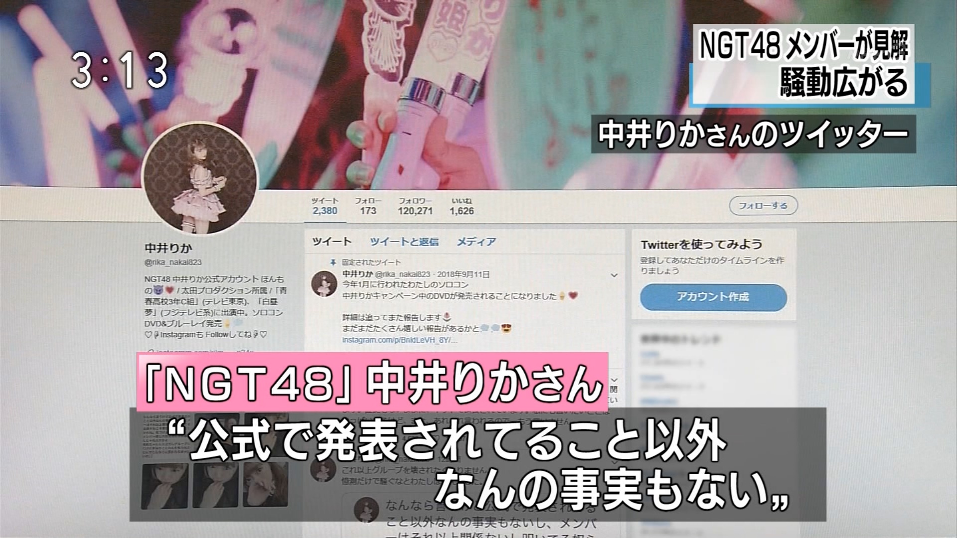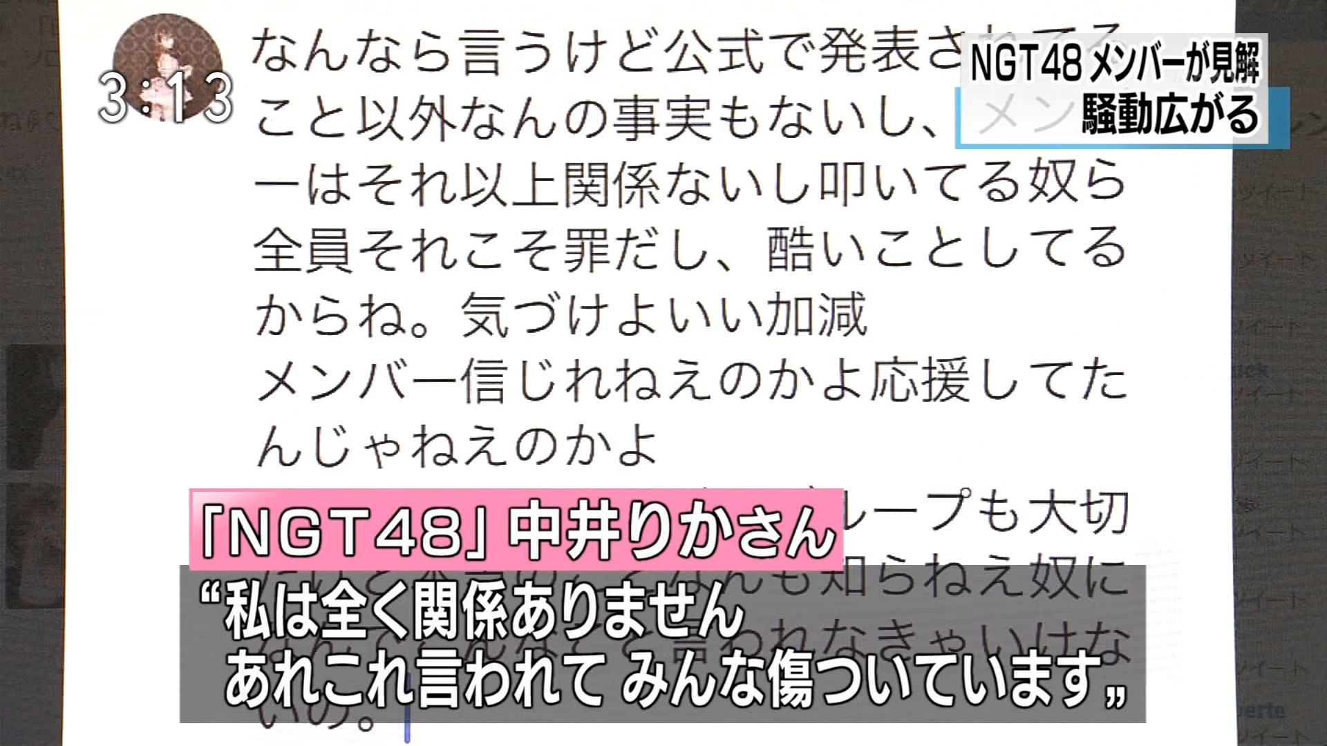 【悲報】NGT48中井りかのブチギレツイートがNHKニュースで晒されるwww