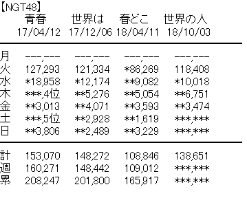 【NGT48】4thシングル「世界の人へ」4日目売上は3,474枚