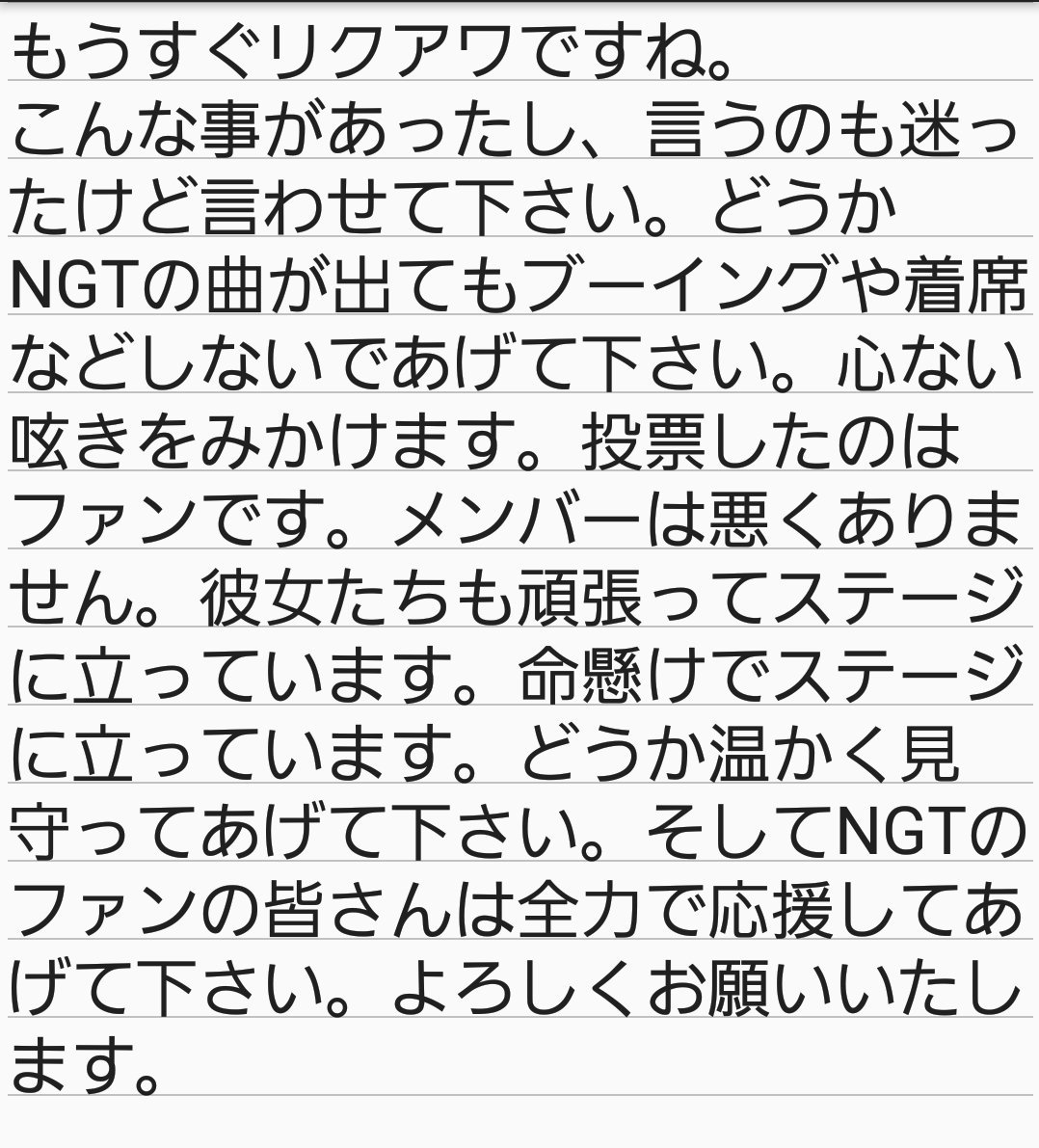 そしてNGTファンの皆さんは全力で応援してあげてください。