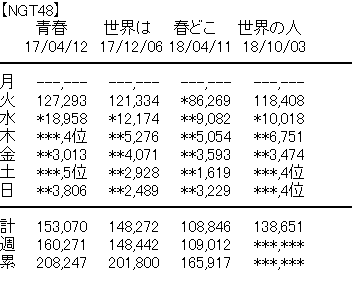 【NGT48】4thシングル「世界の人へ」6日目売上はデイリー4位
