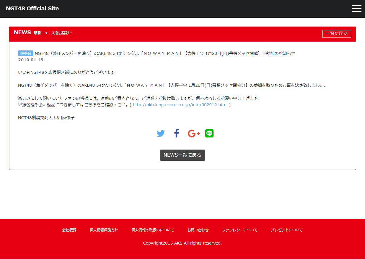 【NGT48】リクアワには参加できるのに1月20日の握手会不参加(兼任メンバーを除く)ってどういう事?