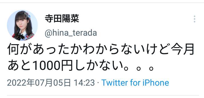 【悲報】俺たちの陽菜ちゃん「今月あと1000円しかない」