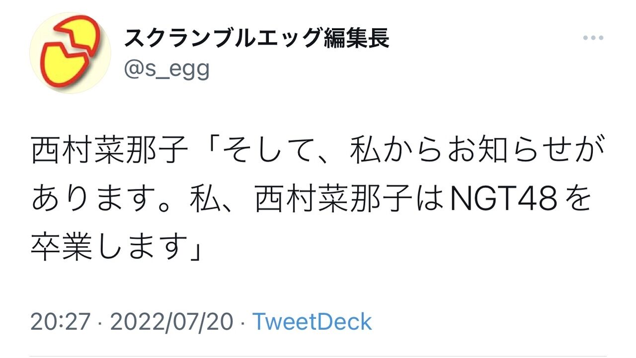 【速報】NGT48 西村菜那子が卒業を発表