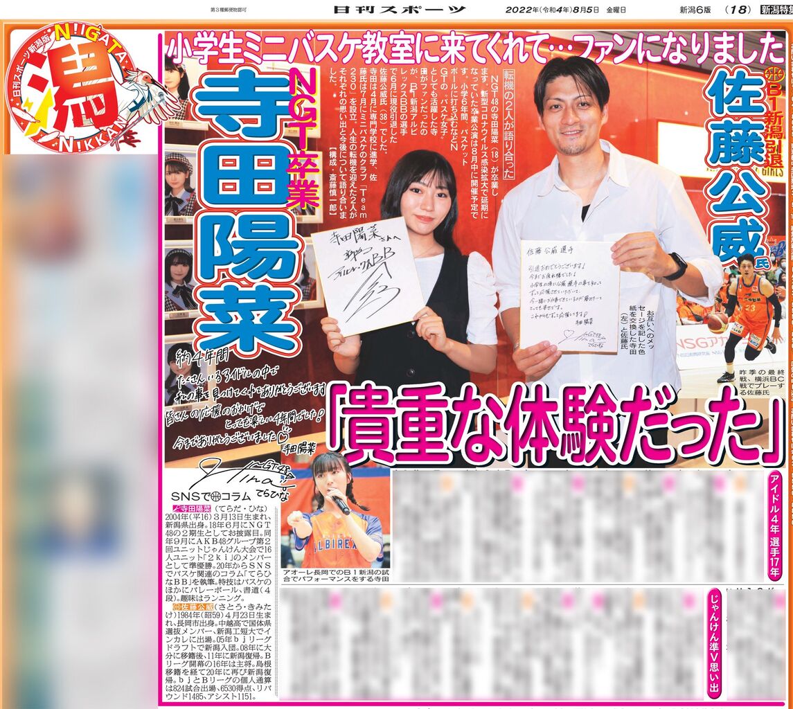 【朗報】俺たちの陽菜ちゃんが日刊スポーツにデカデカと掲載!!