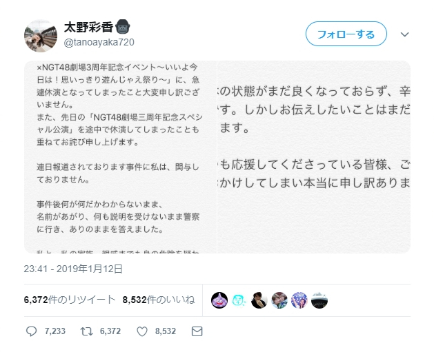 NGT48ファン、今回の活動辞退の件について正論ツイートをする!