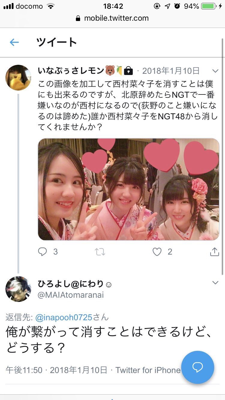 稲岡龍之介(いなぷぅさレモン)「北原里英が卒業したらNGTで一番嫌いなのが西村菜那子、誰か西村を消して」