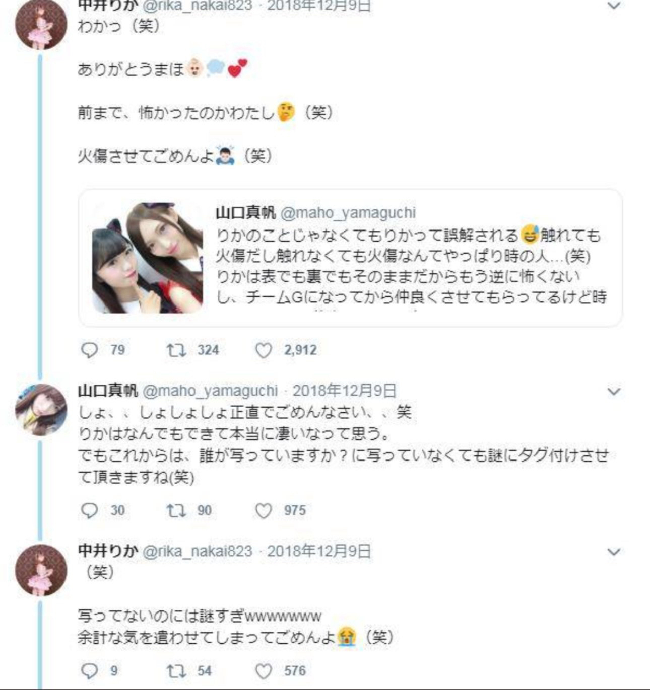 【NGT48】暴行事件翌日の山口真帆と中井りかのやり取りからして中井りかはシロ?