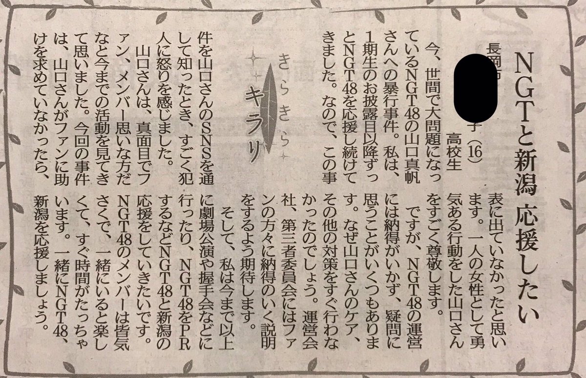 新潟日報、NGT48運営批判の投書を紙面に掲載