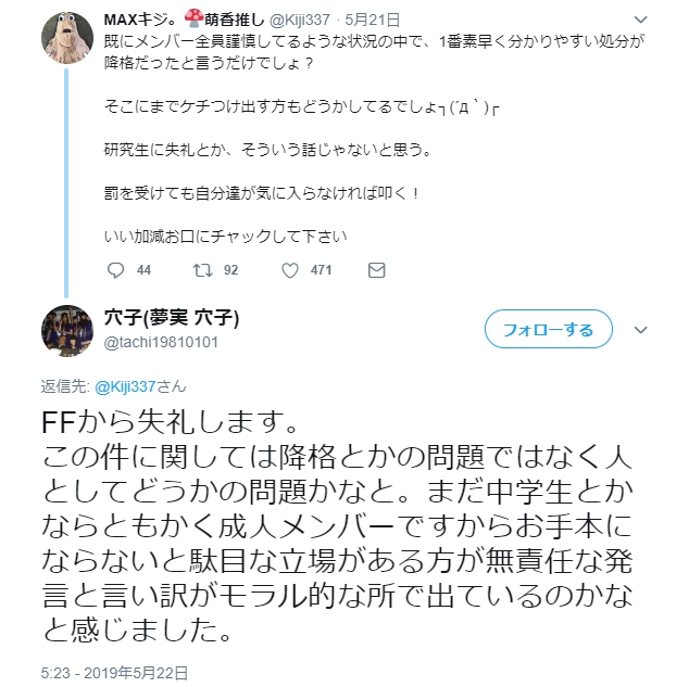 既にメンバー全員謹慎してるような状況の中で、1番素早く分かりやすい処分が降格だったと言うだけでしょ?