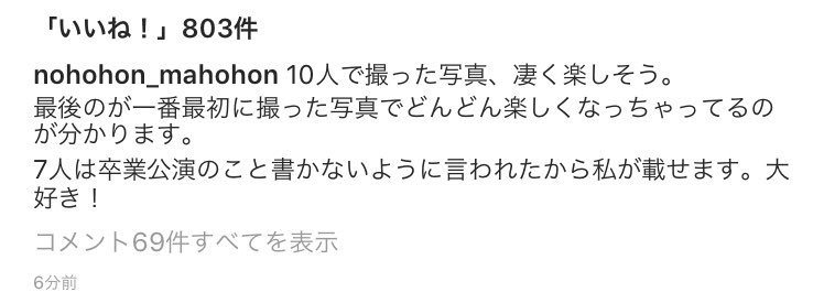【NGT48】山口真帆「私はずっと7人の味方です。大好きな安心安全7。7人は卒業公演のこと書かないように言われたから私が載せます」