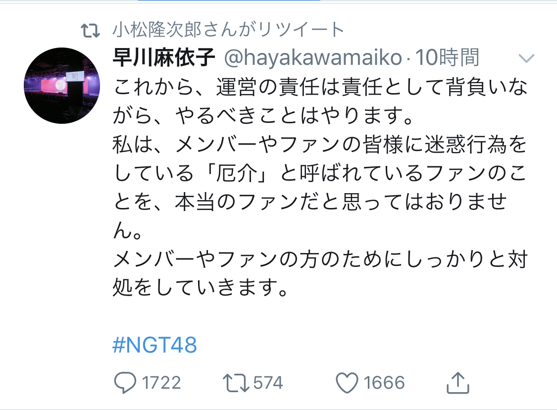 NGT48ファン、今回の活動辞退の件について正論ツイートをする!