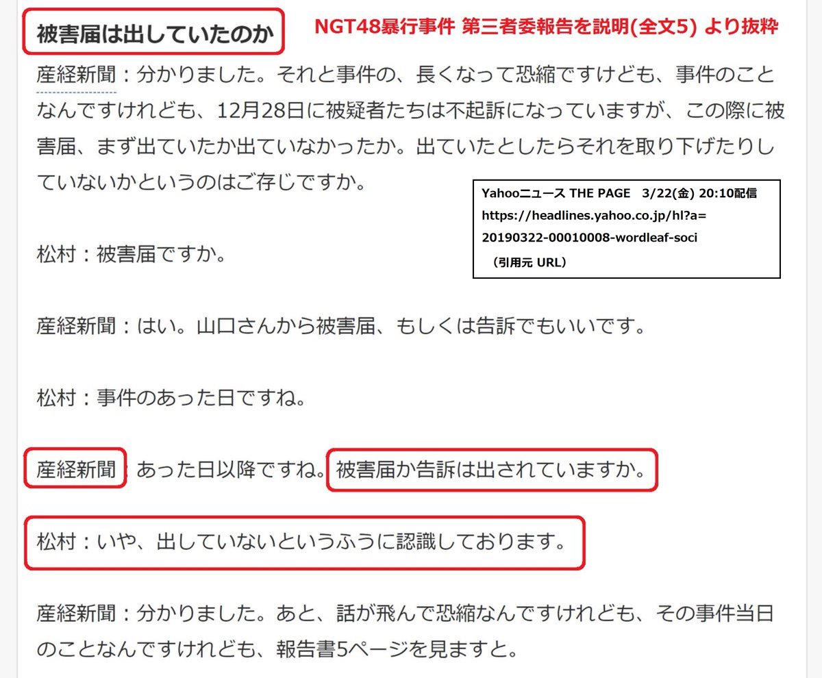 【NGT48暴行事件】今村「被害届は出した」松村匠「被害届は出してない」←これ