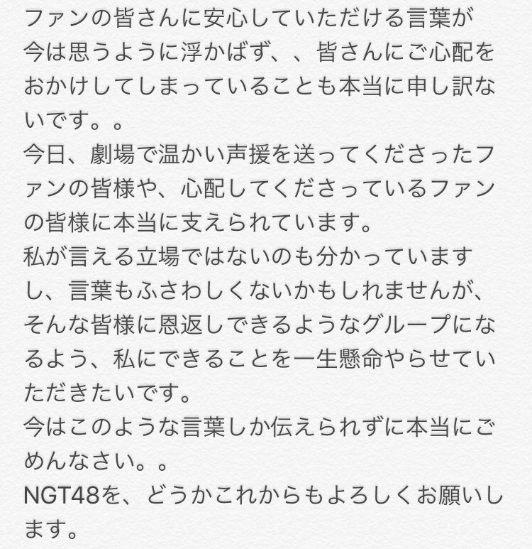 NGT48ファン、今回の活動辞退の件について正論ツイートをする!