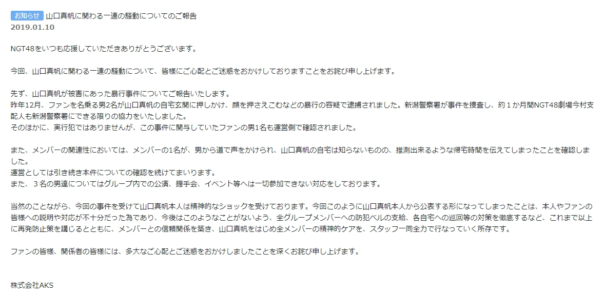 【NGT48】山口真帆は3人のメンバーと言ってるのに AKSは1名しか関与してないと言ってるけど